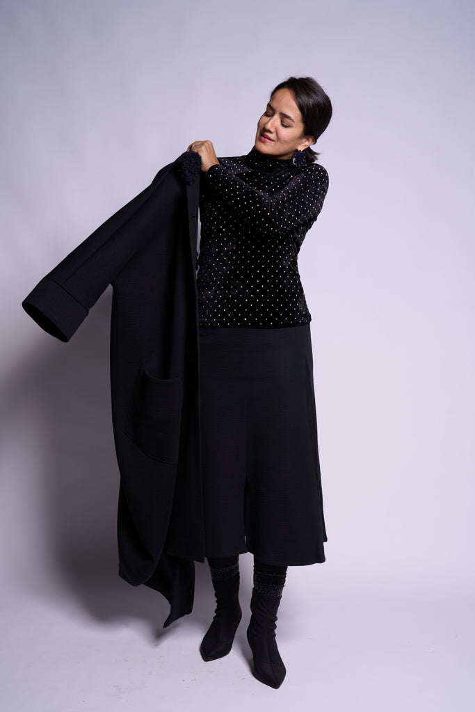 Es gibt nur wenige Mäntel, die in Sachen Qualität, Design und Zeitlosigkeit überzeugen. Ein guter Mantel sollte ein Leben lang halten und nicht nur eine Saison überdauern. Nika ist der Inbegriff von zeitlosem Luxus. Die Egg-Shape-Form mit dem eleganten Innenleben und dem flauschigen Stehkragen: eine großes, langlebiges Tragegefühl.