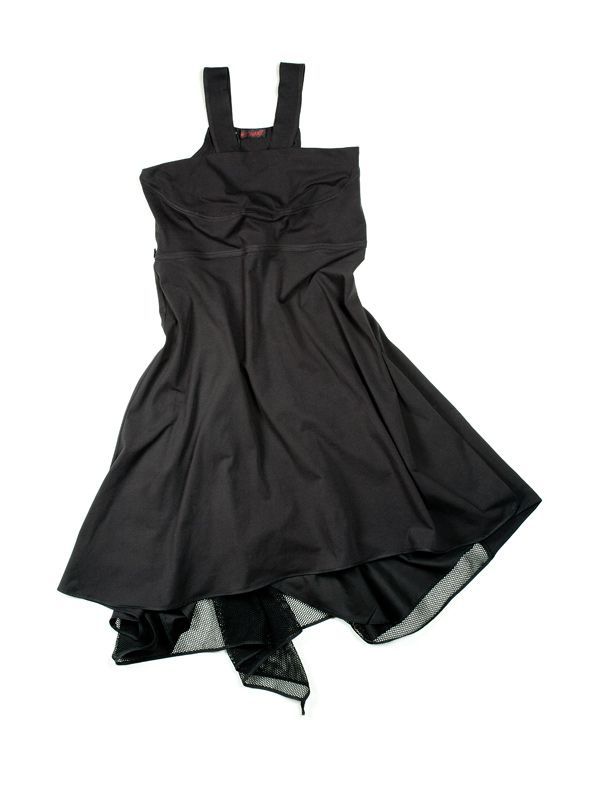 Netzeinsatz im Rückenteil kann lang, oder am Knopf, rechte Seite verkürzt, getragen werden.